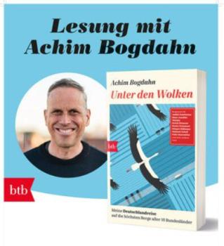 Achim Bogdahn, bekannter Moderator aus dem Bayerischen Rundfunk, besteigt in seinem Buch "Unter den Wolken" die höchsten Berge unserer 16 Bundesländer. In jeder Region wird er von einer bekannten Persönlichkeit begleitet- von Rocko Schamoni (Schleswig-Holstein), über Margot Käßmann (Niedersachsen) bis hin zu Felix Neureuther (Bayern) oder Mehmet Scholl (Baden-Württemberg).